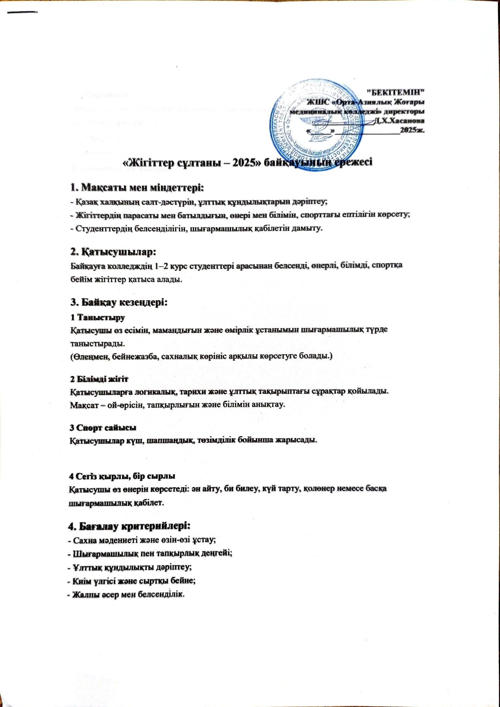 Жігіттер сұлтаны 2025 байқауының ережесі